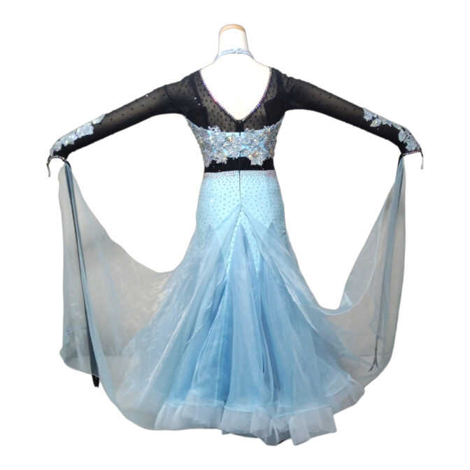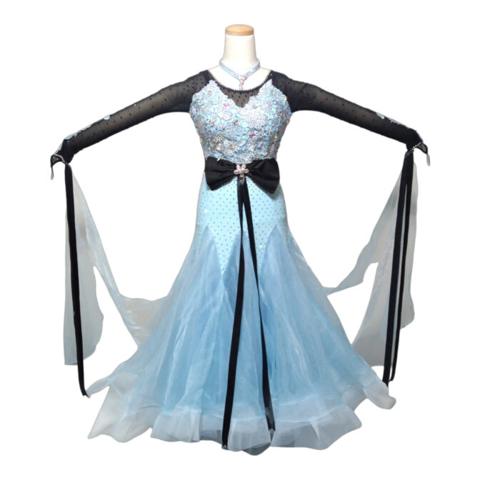 ドレス011 アイスブルー黒リボン Mサイズ